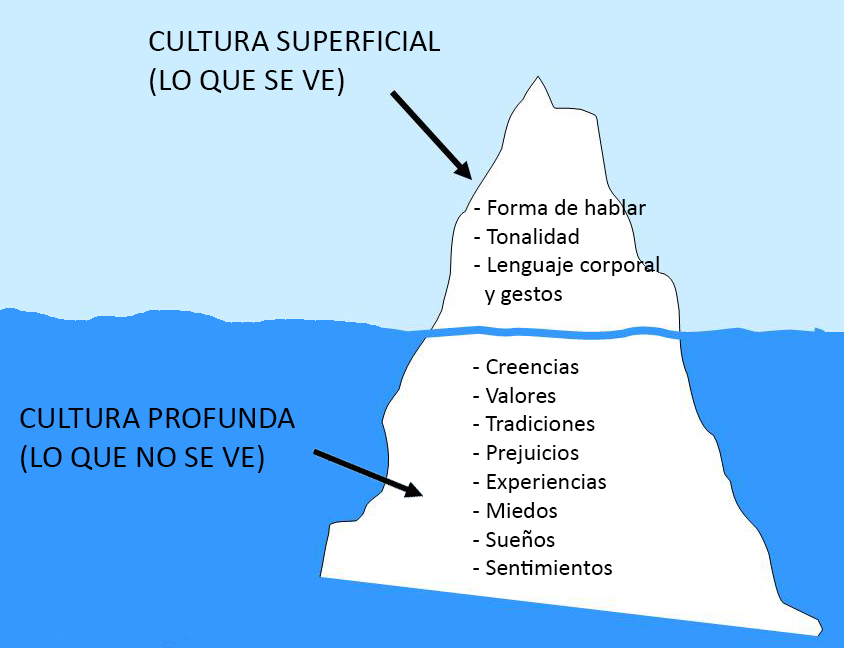 Se trata de visualizar la cultura como un iceberg, con una parte que se puede ver solamente la superficie y otra oculta en la parte baja que conforma el fondo de la cultura.